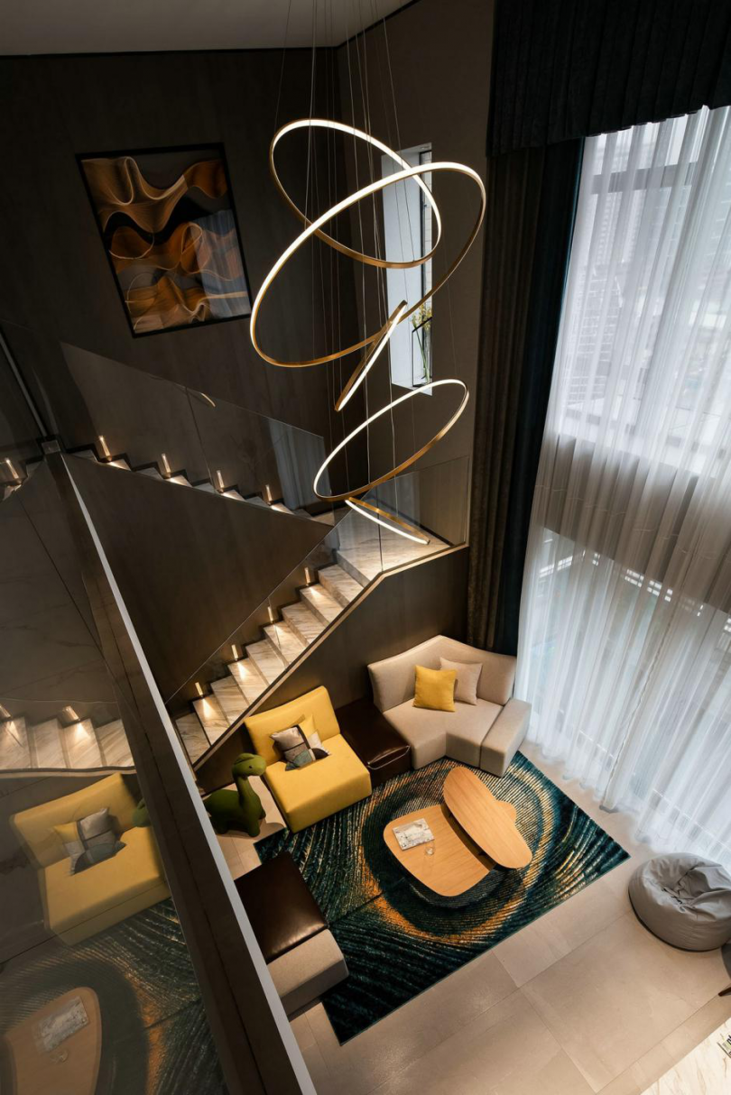 領(lǐng)秀濱江頂樓復(fù)式新中式效果裝修設(shè)計(jì)效果圖